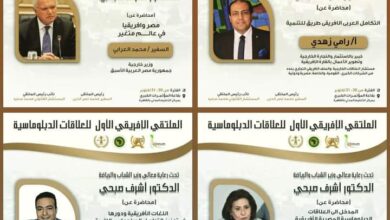 أيام قليلة وتطلق الجمعية الإفريقية “اللجنة القومية للاتحاد الإفريقي”، الملتقي الإفريقي الأول للعلاقات الدبلوماسية، علي مدار يومين متتاليين (30 -31)…