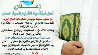 أطلقت شركة مياه الشرب والصرف الصحى بسوهاج مسابقة دينية فى حفظ وتلاوة القرآن الكريم للعاملين بالشركة وابنائهم وذلك بمناسبة حلول…