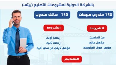 وزارة العمل: 300 فرصة عمل بالشركة الدولية لمشروعات التصنيع (بيتي)