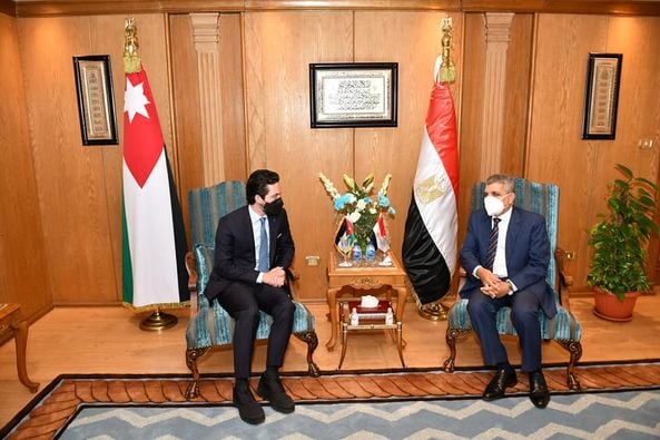 ولي العهد الأردني يتعرف على مستجدات المشروعات التنموية بقناة السويس