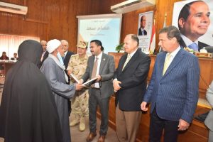 وفي ختام الحفل قدم محافظ أسيوط درع المحافظة لكلا من المهندس أشرف رشاد رئيس الهيئة البرلمانية لحزب مستقبل وطن وعلاء فاروق رئيس مجلس إدارة البنك الزراعي المصري الذي قدم بدوره درع البنك للوزير المحافظ كما تم تكريم عدد من أسر الشهداء تقديرًا لما قدموه من تضحيات من أجل الوطن والمكرمون هم أسر الشهداء (الرائد/محمد صلاح محمد – العريف/ إلهامي عياد حبيب رزق الله – العريف /إسلام رشاد زكي – جندي/ ياسر رجب كامل هاشم – جندي/ محمد حمدي محمود – جندي/ محمد رفعت عبد الحفيظ – جندي/ أحمد علي محمد أحمد – جندي/ فاروق جعفر أحمد ثابت – جندي/ جاد الرب حسني جاد الرب – جندي/ مينا نصري عطيه) بعدها تم تسليم الأسر المستفيدين الأجهزة الكهربائية المقدمة من البنك الزراعي المصري.