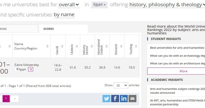 جامعة القاهرة الجامعة المصرية الوحيدة ضمن الافضل 500 عالميا في قطاع الآداب والعلوم الإنسانية