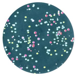 عرض مكبّر للبكتيريا التي تنمو على طبق أجار.