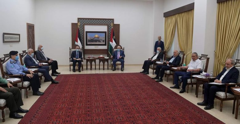 ترأس رئيس دولة فلسطين محمود عباس، اليوم السبت، اجتماعا طارئا لمتابعة الوضع في الأرض الفلسطينية كافة، القدس والضفة، وغزة، بحضور رئيس الوزراء محمد اشتية، وقادة الأجهزة الأمنية، وكبار المسؤولين.