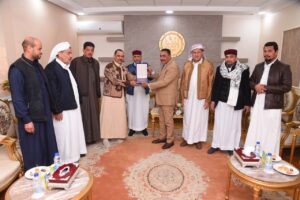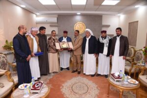 ثم قدم العمدة عمارى الجهمي درع القبائل العربية بمحافظة أسيوط ونسخة من كتاب الله لمحافظ مطروح تقديرآ لدوره الإنساني الفعال وجهود لجنة المساعي الحميدة بمحافظة مطروح فى إعلاء روح العفو والتسامح وحقن الدماء وأنهاء الخصومة مما كان له عظيم الأثر في نفوسهم جميعا..