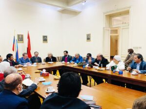 ومن جانبه رحب “مراد جاتين” بالحضور، وأكد على أن لقاء اليوم مع المؤسسات المصرية سواء الحكومية أو المجتمع المدنى سيكون نواة لمزيد من التواصل على كافة المستويات، لافتاً الى أن المراكز السوفيتية فى الماضى كان لها نشاطاً مكثفاً وبعد تفكك الاتحاد السوفيتى توقف هذا النشاط والآن عادت المراكز للعمل بشكل جيد، وعبر عن رغبته فى تقوية هذا النشاط مع شركاؤه من ممثلى المؤسسات المصرية ورحب بكافة المقترحات وأنها ستكون محل اهتمامه الشخصى للإتفاق على القرار المناسب للجميع.