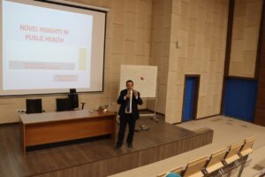 كما قام أيضا بإلقاء محاضرة لطلاب الصيدلة والصحة العامة وطب الأسنان عن الرؤى الجديدة للصحة العامة في المجتمع المصري.