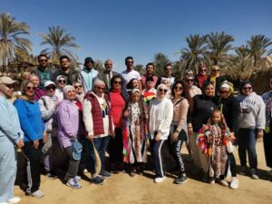 وكان في استقبال المشاركات بالمارثون فتيات سيوة بأزيائهم السيوية الرائعة والتمر السيوى وقد قامت المشاركات بالتقاط الصور التذكارية مع الفتيات السيويات معبرات عن سعادتهم بالمشاركة بالمعسكر بسيوة