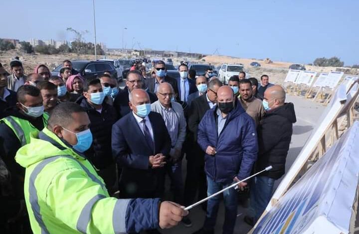 ثم تفقد الوزير مشروع كوبري الحمام السطحي وكوبري السكه الحديد والذي يتضمن انشاء كوبري أعلى ترعة الحمام بطول ٣٠ متر وعرض 45 متر بواقع ٥ حارة مرورية لكل إتجاه وإنشاء كوبري السكة الحديد بطول ٦٥٠ متر وعرض ٣٠ متر بواقع ٣ حاره مرورية لكل اتجاه .