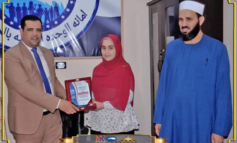 كرم النائب مصطفى الكحيلى عضو مجلس الشيوخ أمين قطاع الأعمال لحزب مستقبل وطن فى أسيوط الطالبة شيماء زكريا عثمان بالصف الثالث الإعدادي بمعهد نور الأزهر بقرية المندرة بمنفوط، بعد حصولها على المركز الأول في مسابقة حفظ القرآن الكريم.