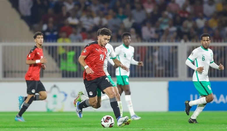 وحاصر المنتخب السعودي في منتصف ملعبه، وتنوعت هجمات الفراعنة الصغار من كافة المحاور، لكن التكتل الدفاعي للمنتخب السعودي تصدى لكل المحاولات المصرية