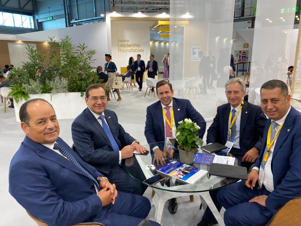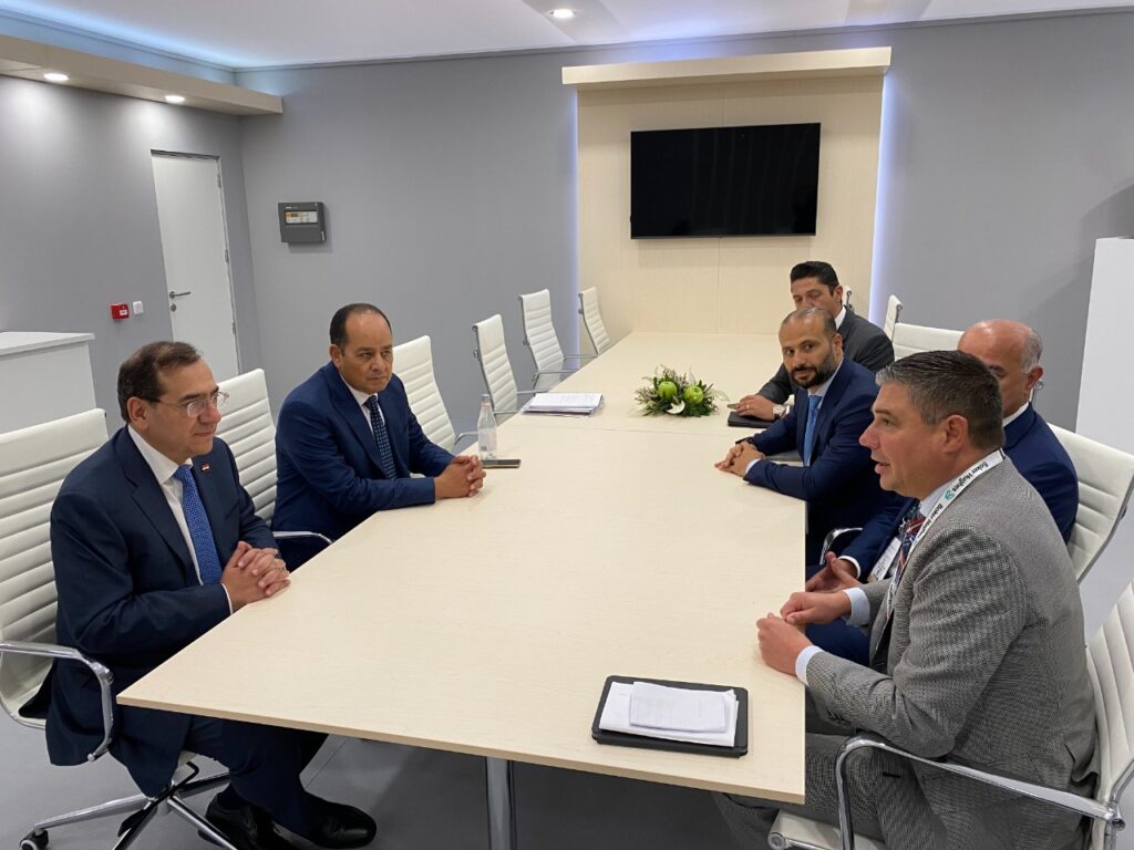 عقد المهندس طارق الملا وزير البترول والثروة المعدنية جلسة مباحثات مع وزيرة الطاقة والتجارة والصناعة القبرصية ناتاشا بيليديس ، كما عقد عدة اجتماعات مع عدد من رؤساء الشركات العالمية فى إطار مشاركته فى مؤتمر غازتك 2022 بمدينة ميلانو الإيطالية ، وتناولت الاجتماعات موضوعات التعاون المشترك واستكشاف الفرص المتاحة لزيادة سبل التعاون ، وتأكيد الملا أن قطاع البترول المصري يولي أهمية كبيرة للتعاون مع كافة الشركات العالمية التى ترغب فى تنفيذ أنشطة واستثمارات فى أعمال البحث والاستكشاف عن البترول والغاز وأيضاً فى مجال التحول الطاقي وخفض الانبعاثات فى ظل استراتيجيات الدولة لتكون مصر أحد أهم الأسواق، ومركزاً لتداول وتجارة الطاقة بكافة مصادرها.