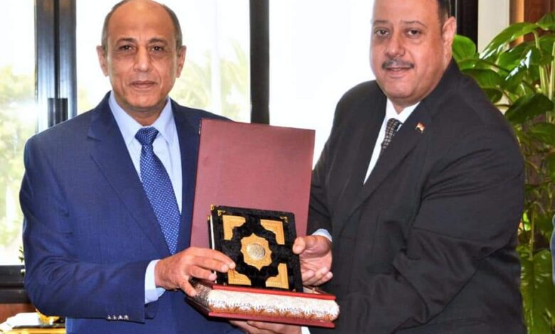 وفى نهاية اللقاء أهدى رئيس اللجنة النقابية نسخة من كتاب الله عز وجل إلى وزير الطيران المدنى.