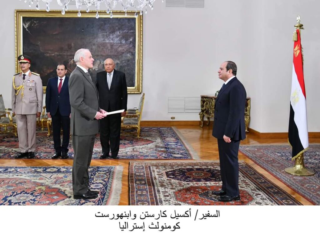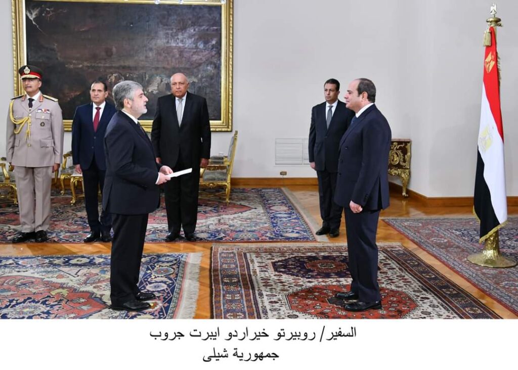 وصرح السفير بسام راضي المُتحدث الرسمي باِسم رئاسة الجمهورية بأن السيد الرئيس رحب بالسادة السفراء الجدد بالقاهرة، وقد عبر سيادته للسادة السفراء عن تمنياته لهم بالتوفيق في مهامهم. وأكد السيد الرئيس حرص مصر على تعزيز أطر العلاقات الثنائية مع دولهم في المجالات كافة، مشددا على ضرورة استمرار التواصل والتنسيق إزاء مختلف القضايا الإقليمية والدولية محل الاهتمام المشترك.