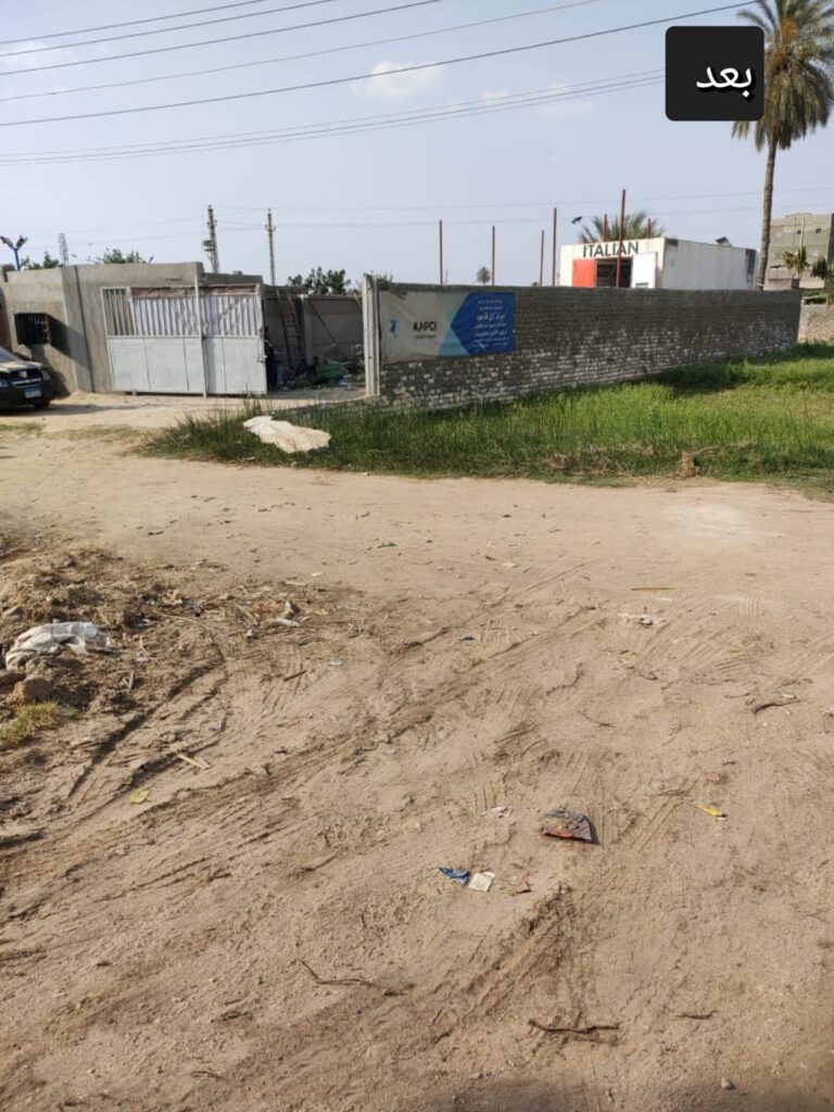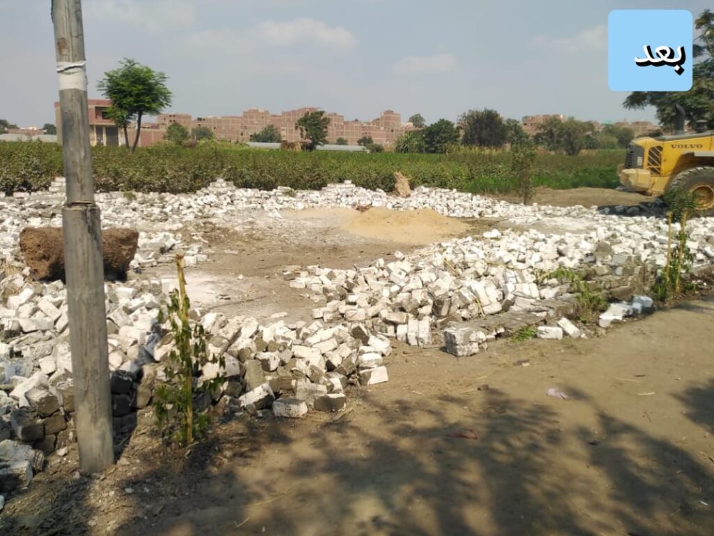 كما تم إزالة مخالفة باسم/امل احمد ابراهيم بناحية الحسانين زراعة فى المهد على مساحة 100م عباره عن سور بالطوب والاسمنت تم إزالتها