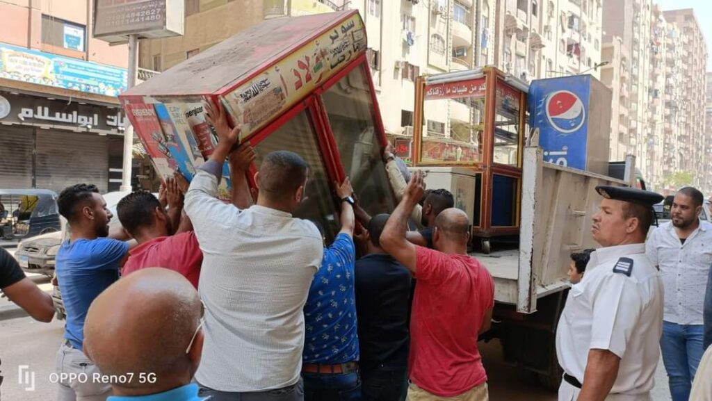 رفع ١٥٠٠ حاله اشغال وازاله تعديات المحال والباعه المفترشين للطريق العام والاعلانات المخالفة بالطوابق