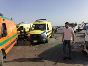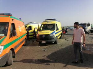 وذلڪ عقب تصادم سيارتين ميكروباص بسيارة أجرة على محور 30 يونيو بالقرب من مدخل الحى الإماراتى التى يقع جنوب بورسعيد