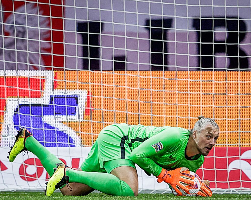 وخاض الحارس ريمكو باسفير صاحب الـ38 عام يلعب اليوم أول مباراة دولية له مع منتخب هولندا