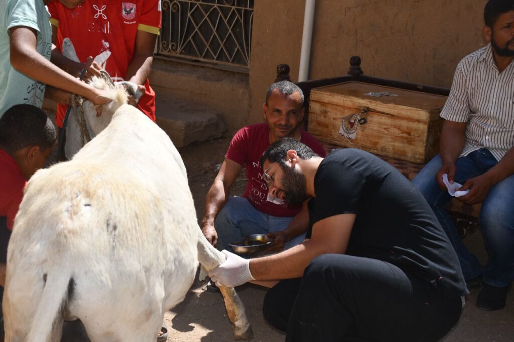 والتي تنفذها كلية الطب البيطري خدماتها العلاجية المجانية، و تستهدف قرى ومراكز المحافظة ضمن أنشطة المبادرة الرئاسية حياة كريمة، حيث انطلقت لقري خارفة بمركز جرجا، وآبار الملك بمركز اخميم وكوم غريب بمركز طما، تم فحص وعلاج ٩٨٠ حالة مرضية من الحيوانات من أبقار وجاموس وأغنام وماعز ودواب و طيور، وذلك بمشاركة عدد من أعضاء هيئة التدريس والهيئة المعاونة والطلاب بالكلية.