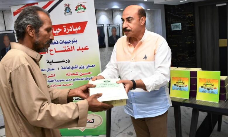 ضمن المبادرة الرئاسية ” حياة كريمة ” ووسط توزيع حلوى المولد .. محافظ أسوان يسلم 27 شيك للعمالة الغير منتظمة