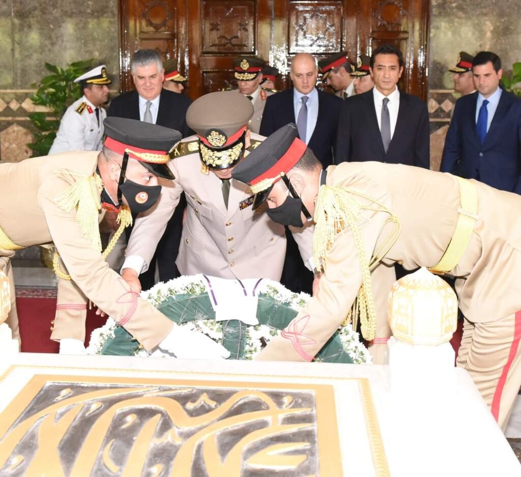 وفى تقليد عسكرى أصيل للوفاء بما قدمه الزعيم الراحل قام الفريق أول / محمد زكى بوضع إكليل من الزهور على ضريح الرئيس / جمال عبد الناصر ، وقراءة الفاتحة ترحماً على روحه الطاهرة .