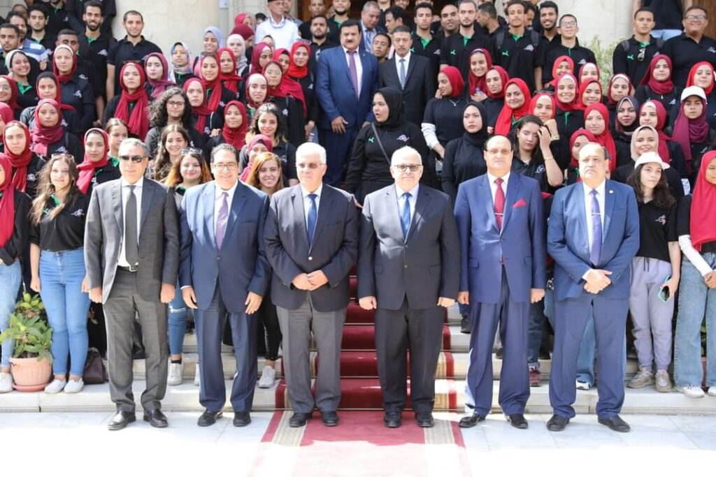 في بداية الزيارة، أدى الوزير ورئيس الجامعة تحية العلم وسط قيادات الجامعة والطلاب، وتبادل مع عدد من الطلاب حديث أبوي، واطمأن على استعدادهم لبدء العام الدراسي الجديد، وكذلك الاطمئنان على تنفيذ كافة الإجراءات الاحترازية داخل مباني الجامعة وقاعاتها الدراسية، ومتابعة دخول الطلاب للجامعة بشكل مُنظم.
