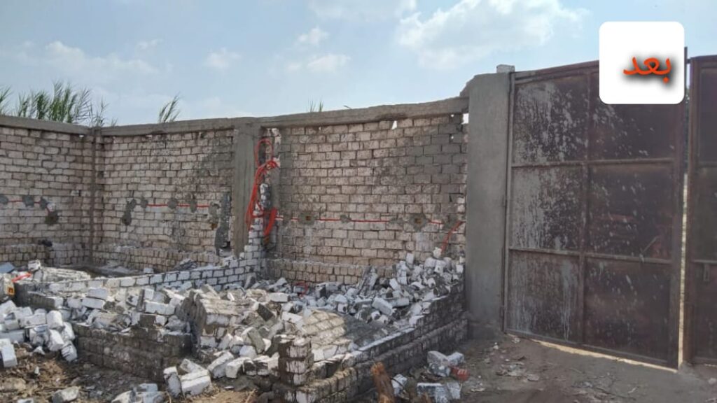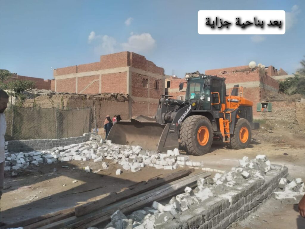 كما تم إزالة بناحية جزاية عباره عن حوائط بالطوب والاسمنت على مساحة 80م زراعة فى المهد باسم/محمود صلاح محمود