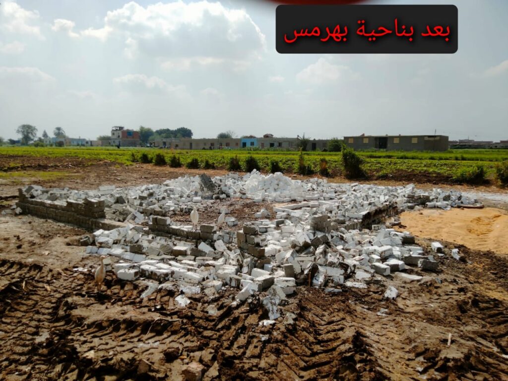 كما تم إزالة مخالفة عباره عن سور بالطوب والاسمنت على مساحة 150م باسم المواطن/محمود سلامة ابراهيم بناحية بهرمس زراعة فى المهد
