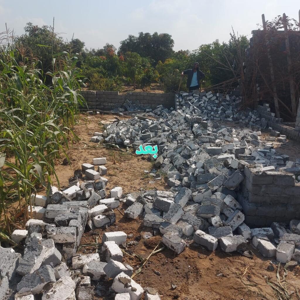 كما تم إزالة بناحية جزاية عباره عن حوائط بالطوب والاسمنت على مساحة 80م زراعة فى المهد باسم/محمود صلاح محمود