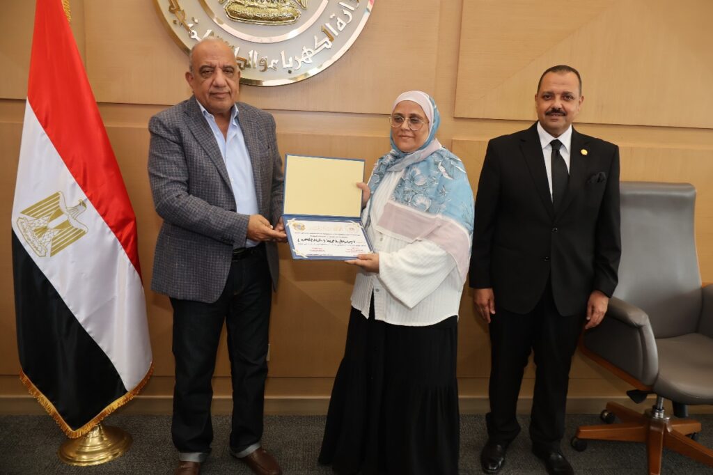 خلال احتفال النقابة العامة للعاملين بالمرافق بالعامل المميز وزير الكهرباء يسلّم عدد من العاملين المتميزين بشركات الكهرباء شهادات تقدير ورحلات عمرة مجانية
