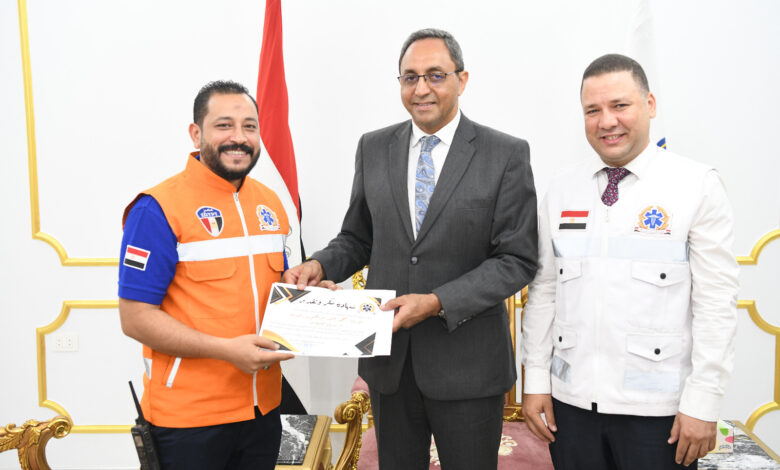 محافظ قنا يكرم مسعفًا وفني قيادة بهيئة الإسعاف لجهودهما في إنقاذ حالة ولادة طارئة بقرية خزام بقوص