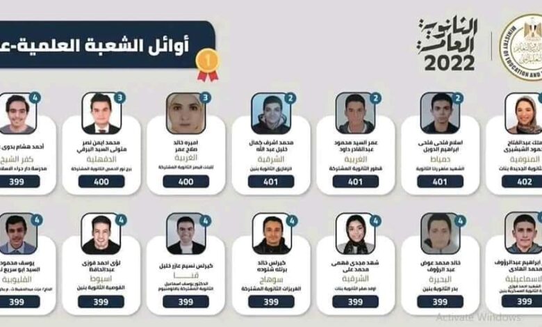 الأنوار المصريه تتقدم بخاص التهانى لا وائل الثانويه العامه على مستوى الجمهوريه وكذلك كل الناجحين فى الشهاده الثانوية مع تمنياتنا لهم بدوام التوفيق.