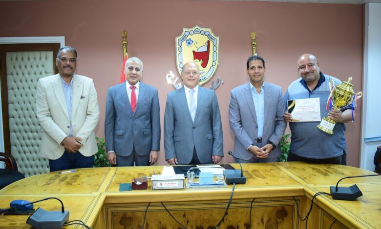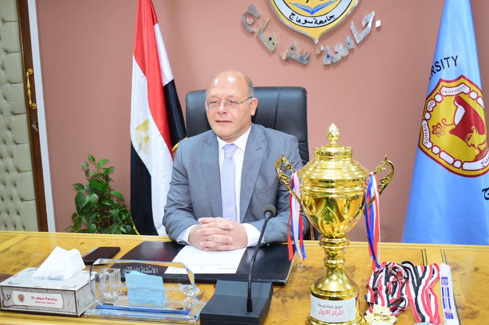النعماني يكرم أبطال جامعة سوهاج الفائزين بالمراكز الأولى والحاصلين على ميداليات وكؤوس فى المسابقات الرياضية القمية