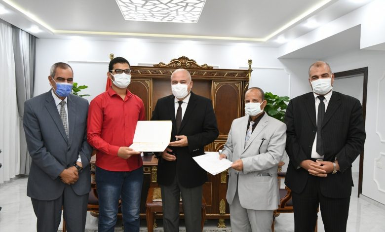 محافظ قنا يستقبل ثانى الجمهورية في شهادة الثانوية العامة بمكتبه لتكريمه