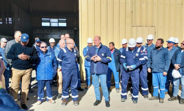 المهندس عبد السلام المنزلاوي رئيس شركة عجيبة يقوم بجولة تفقدية ووقفة للسلامة بمحطة مليحة للغاز ومحطة معالجة الزيت الخام