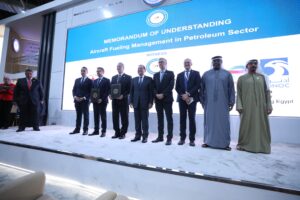 وتوقيع مذكرة تفاهم بين الهيئة المصرية العامة للبترول وتوتال انرجيز نيابة عن أدنوك للتسويق بشأن دعم تقييم الجدوى الفنية والاقتصادية لإدارة وتوزيع الوقود في قطاعي تموين الطائرات والمحطات.