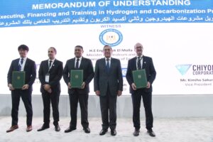 وذلك بهدف التعاون إلى الاستفادة من خبرات شركة (RINA) فى مجال خلط الهيدروجين بالغاز ، وتهدف مذكرة التفاهم مع شيودا وأكسنس إلى التعاون في تنفيذ مشروعات الهيدروجين وتقليل ثاني أكسيد الكربون، وبحث فرص التمويل الممكنة لمشروعات الهيدروجين، وإمكانية قيام شركتي شيودا وأكسنز بالتدريب للمختصين بشركة جاسكو في مجالات التعاون السابق ذكرها.