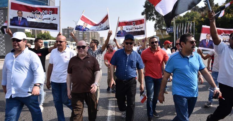 وقال محمد جبران رئيس النقابة العامة للعاملين ، أن الالاف من العاملين حرصوا على التجمع منذ الصباح الباكر للتوجه إلى طريق النصر بميدان المنصه و ميدان هشام بركات بالقاهرة، والمشاركة في مظاهرات دعم وتأييد الرئيس عبد الفتاح السيسي ومؤسسات الدولة، وتأكيد دعم استقرار البلاد، مشيرا إلى أن الشعب يقف خلف الدولة ومؤسساتها، وفي مقدمتها الجيش والشرطة، صفا واحدا، وعلى قلب رجل واحد.