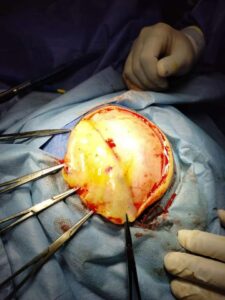 طفل عمره لا يتجاوز ٩٠ ساعة مصاب بنزيف تلقائي تحت الأم الجافية للمخ وتشنجات متكررة تم حجز الطفل بوحدة حديثي الولادة و عمل الأشعات والفحوصات الطبية اللازمة التي أكدت التشخيص و أكدت لياقة الطفل للتخدير وتم التحضير الجيد لدخول العمليات حيث تعتبر هذه الحالة طوارئ و دخول العمليات أمر حتمي وتم قص عظام الجمجمة بالوسائل المخصصة داخل غرفة العمليات و رفع الشباك العظمي لعمل باب دخول للمخ و تفريغ النزيف فوق المخ الملتصق بالقشرة المخية في عملية جراحية استغرقت ساعة ونصف و بعد الإفاقة تم عودة الطفل للحجز بوحدة حديثي الولادة لاستكمال العلاج المناسب ووضع الطفل على جهاز التنفس الصناعي حتى تماثل للشفاء ولا توجد به أي إعاقات عصبية أو حركية قام بالجراحة الأطباء د. سيد سليمان استشاري و رئيس قسم جراحة المخ والأعصاب و د. شيرين إسماعيل استشاري التخدير و د. أحمد غانم أخصائي التخدير.