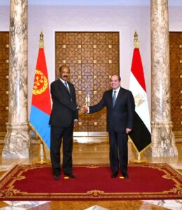 استقبل السيد الرئيس عبد الفتاح السيسي، اليوم بقصر الاتحادية، الرئيس الإريتري “أسياس أفويرقي”، حيث أقيمت مراسم الاستقبال الرسمي وتم عزف السلامين الوطنيين واستعراض حرس الشرف