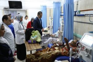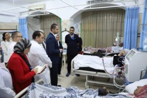 رافق نائب الوزير خلال جولته، الدكتور محمد فوزي مدير إدارة الحوكمة والمراجعة الداخلية بالوزارة، والدكتور بيتر وجيه نائب رئيس أمانة المراكز الطبية المتخصصة، والدكتور تامر حامد مدير عام مستشفى القاهرة التخصصي.