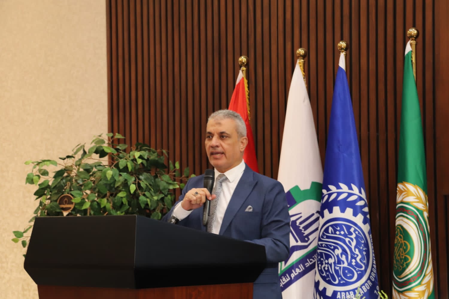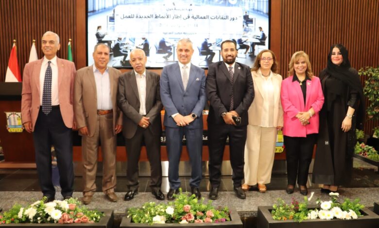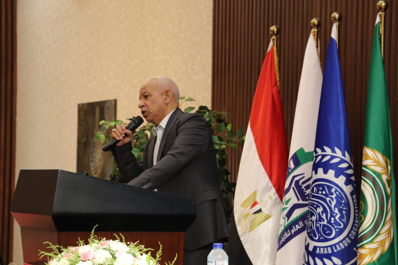 وأنهي الجمل كلمته، بأن الفترة المقبلة تتطلب تعاون مشترك بين النقابات العمالية ومنظمة العمل العربية لعقد ورش عمل وحلقات نقاشية توعوية حول الأنماط الجديدة للعمل لتنمية الوعي لدي القواعد العمالية بالجديد في سوق العمل وكيفية التعامل معه.