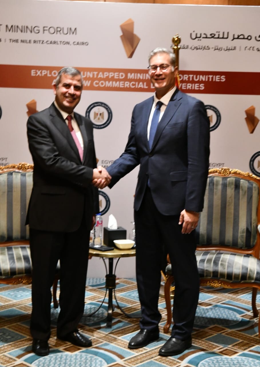 عقد المهندس كريم بدوى وزير البترول والثروة المعدنية جلسة مباحثات مشتركة مع الدكتور صالح الخرابشة وزير الطاقة والثروة المعدنية الاردني ، وذلك على هامش اعمال منتدى مصر الثالث للتعدين.