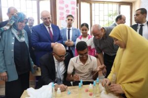 كما حرص الوزير والمحافظ على مشاهدة نشاط طلاب مدارس التربية الخاصة (ضعاف السمع، والمكفوفين، والتربية الفكرية)، خيث أشاد بمواهب الطلاب الفنية وحثهم على مواصلة ممارسة الأنشطة ورعايتهم.