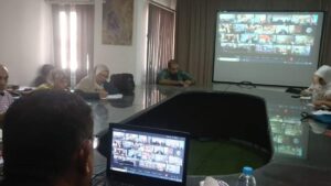 كما استمع سيادته للمقترحات المقدمة من السادة مدراء العموم عبر تقنية الفيديو كونفرانس وقام بالرد عليهم