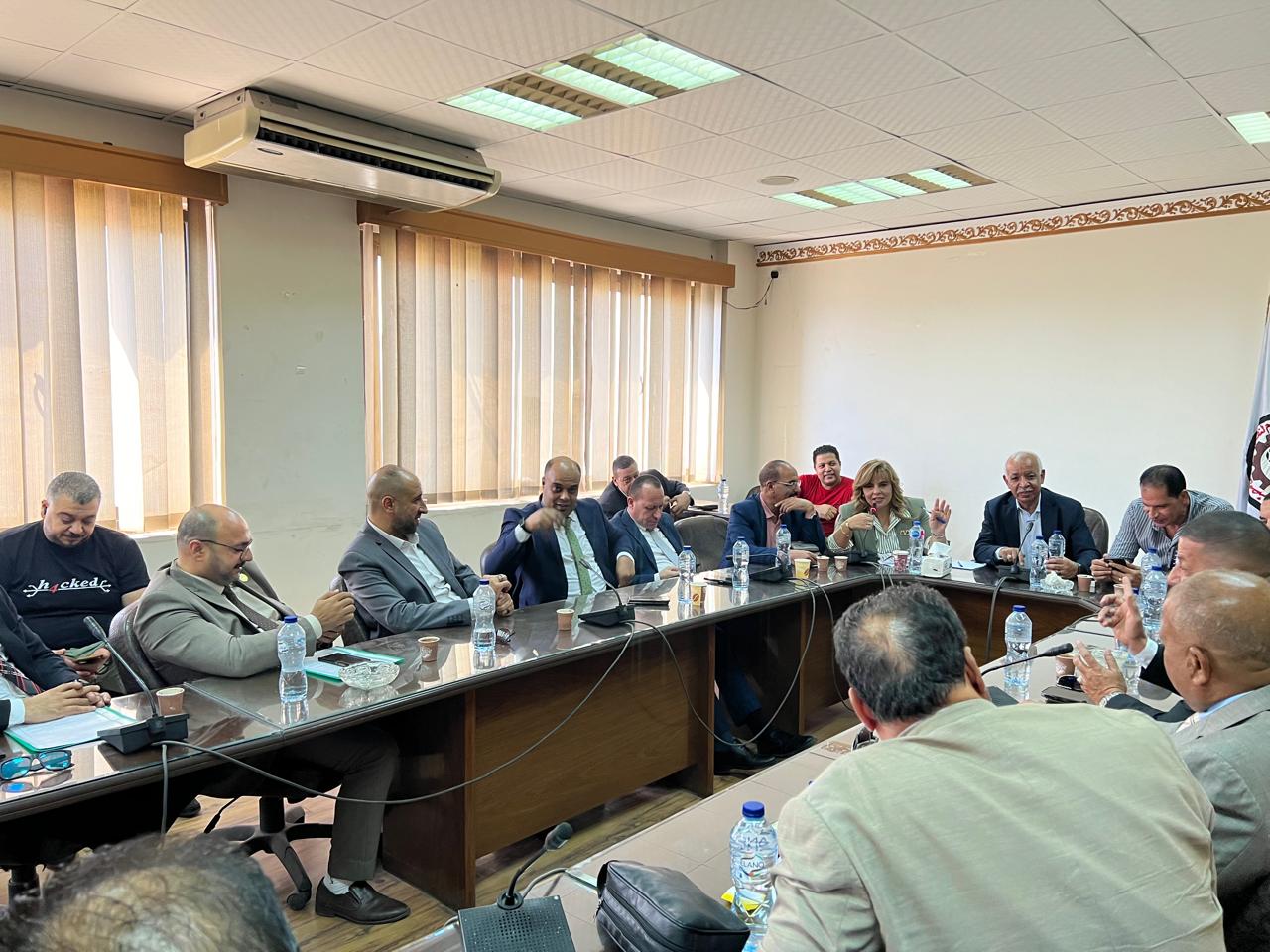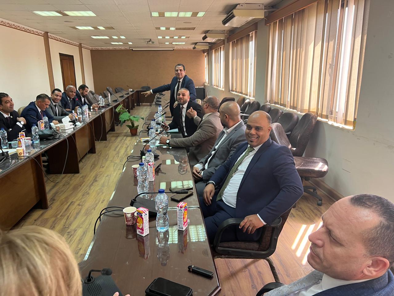 بحضور عبد المنعم الجمل، رئيس الاتحاد العام لنقابات عمال مصر، هشام رضوان امين صندوق الإتحاد، احمد الدبيكى عضو مجلس ادارة الاتحاد العام لنقابات عمال مصر، المستشار اسماعيل صبرى مدير عام الشؤون القانونية للاتحاد