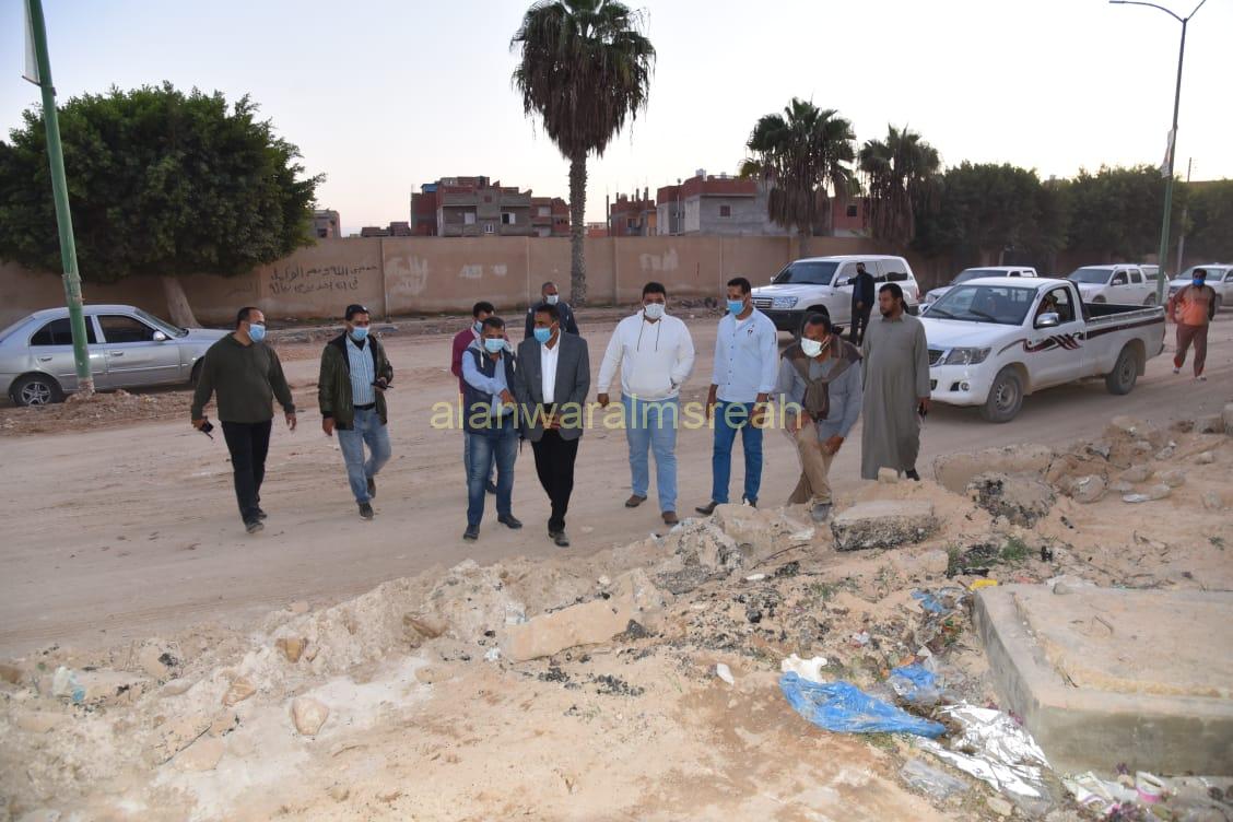 حيث تفقد محافظ مطروح شارع ١٥ استمرارا لمتابعة إستكمال رفع مستوى كافة الشوارع المنخفضة لمنع تراكم مياهالامطار وحماية المنازل والمواطنين مرورا حتى طريق الوادى مع الإسراع فى انهاء اعمال تركيب مواسير شبكةالصرف الصحى وإنهاء تسوية وتمهيد الشارع الرئيسي