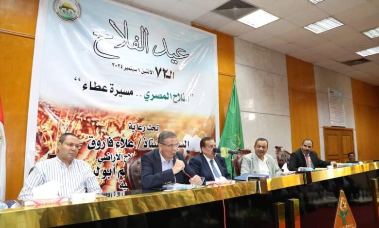 شهد علاء فاروق وزير الزراعة واستصلاح الأراضي، واللواء ابراهيم ابوليمون محافظ المنوفية واللواء هشام الحصري رئيس لجنة الزراعة بمجلس النواب، والمهندس عبدالسلام الجبلي رئيس لجنة الزراعة بمجلس الشيوخ، والدكتور صبحي شرف نائب رئيس جامعة المنوفية، احتفالية عيد الفلاح، ال ٧٢، والتي تم إطلاق فعالياتها على مستوى الجمهورية، بقاعة الاحتفالات بجامعة المنوفية، تحت شعار: “الفلاح المصري”.. مسيرة عطاء.