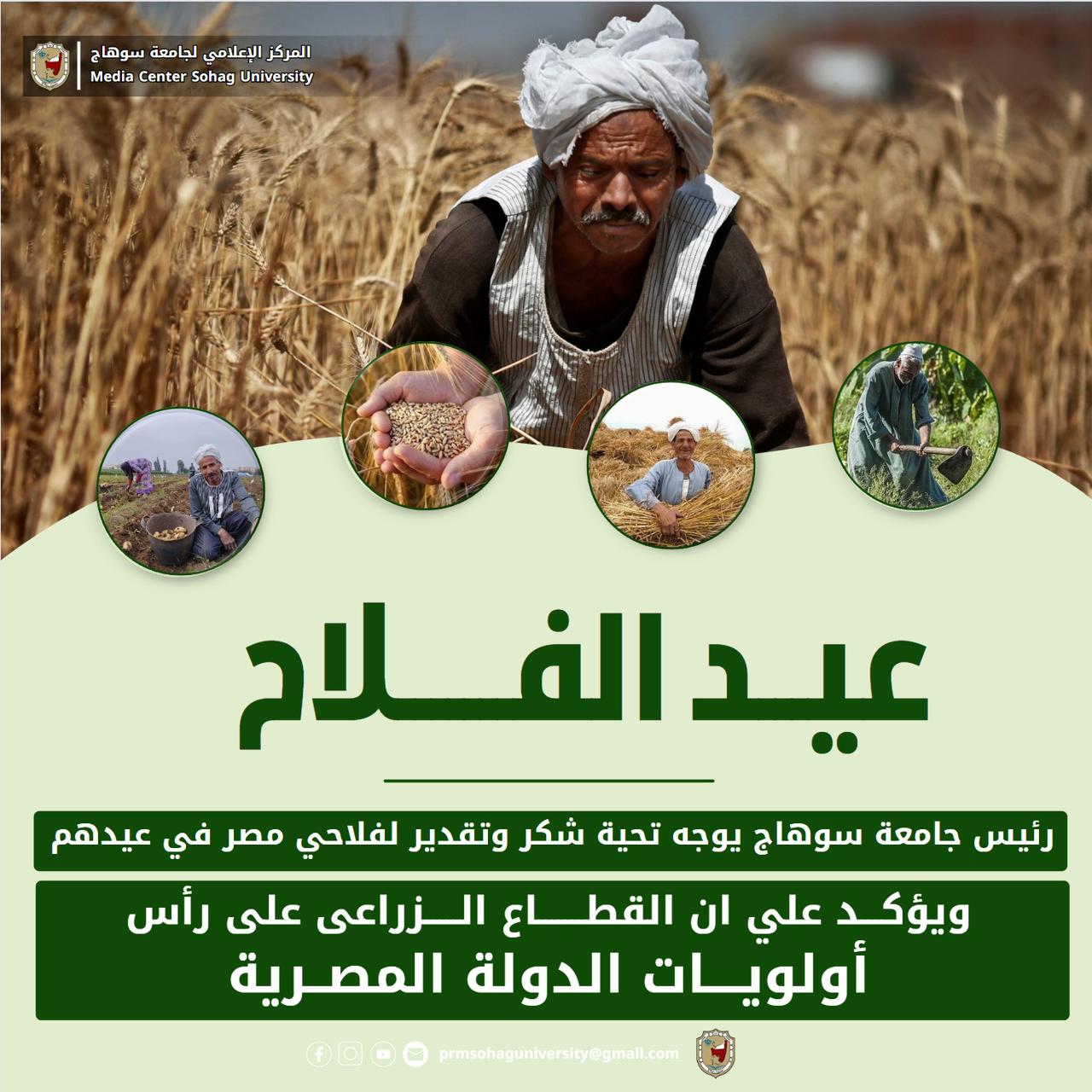 رئيس جامعة سوهاج يوجه تحية شكر وتقدير لفلاحي مصر في عيدهم ويؤكد علي ان القطاع الزراعى على رأس أولويات الدولة المصرية