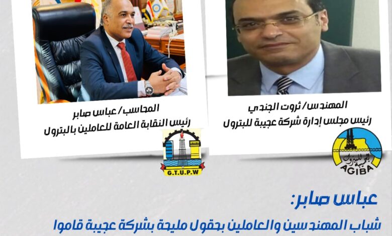 تابعت النقابة العامة للعاملين بالبترول برئاسة المحاسب عباس صابر رئيس النقابة، بكل فخر الإنجاز الغير مسبوق للتجربة الفريدة التي قام بها شباب المهندسين والعاملين بحقول مليحة بشركة عجيبة للبترول، الذين قاموا بدراسة عالمية وجديدة زادت من العملية الإنتاجية للحقول وأنقذت حقول البترول من الدخول في مرحلة تراجع معدلات الانتاج.